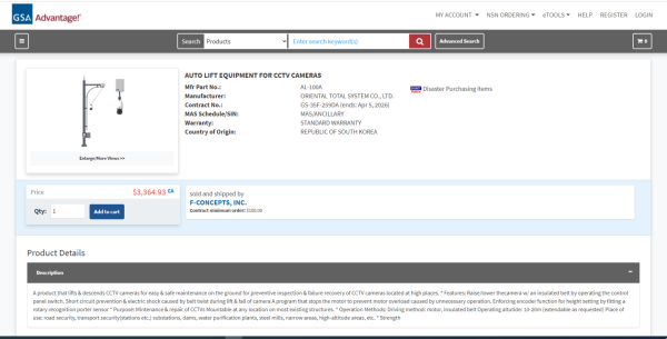 OTS製品の米国連邦調達庁(GSA MAS)スケジュール登録 ページ情報 投稿者 OTS 閲覧数 閲覧 45 投稿日 投稿日 2026.02.26 09:37 本文 関連リンク https://www.gsaadvantage.gov/advantage/ws/search/advantage_search?q=0:… 40回接続 一覧へ 前の記事災害安全認証取得(オートリフト) 次の記事大邱-K-water 協同購買商談会