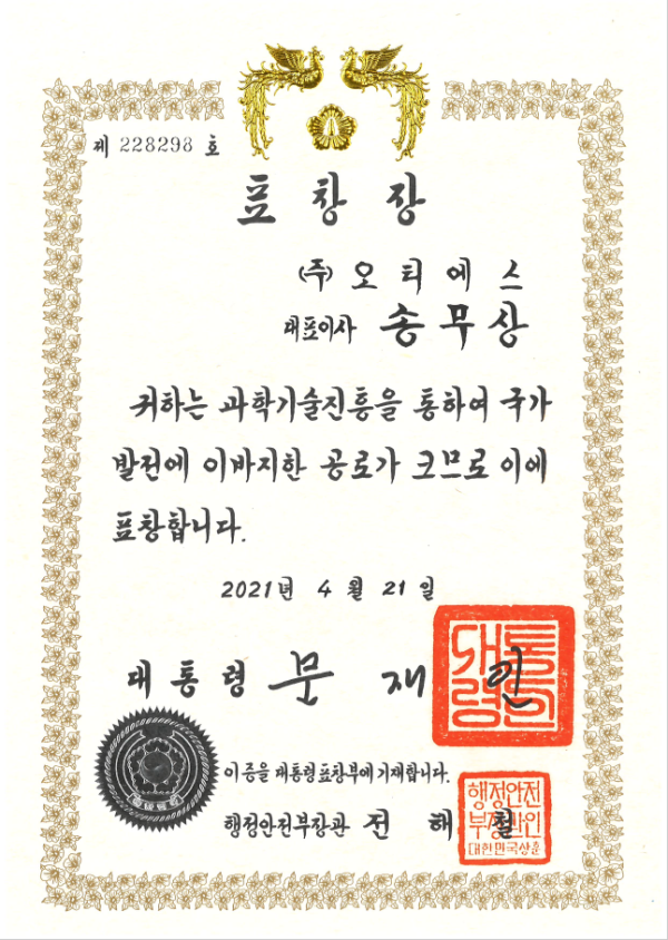 수상 2021 과학의날 기념 정부포상 대통령표창 페이지 정보 작성자 OTS 조회조회 94회 작성일작성일 25-12-23 18:38 본문 2021 과학의날 기념 정부포상 대통령표창 목록 이전글2021년 대전시 스타기업 선정패 다음글오토리프트 우수제품지정증서