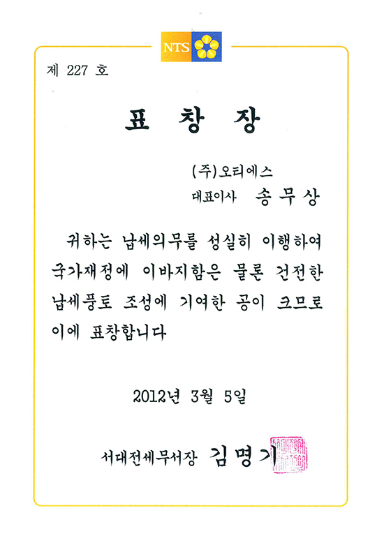 수상 서대전세무서장 모범납세자 표창장 페이지 정보 작성자 OTS 조회조회 84회 작성일작성일 26-02-27 09:56 본문 서대전세무서장 모범납세자 표창장 목록 이전글방송통신위원회위원장 표창장 다음글중소기업청장 표창장
