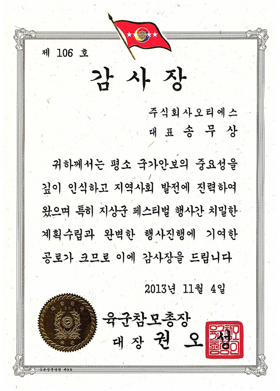 获奖 陆军参谋总长感谢状 页面信息 作者 OTS 浏览浏览 93次 发布日期发布日期 25-12-23 18:27 正文 陆军参谋总长感谢状 列表 上一篇大田地方采购厅长表彰状 下一篇大田无线电管理所长表彰状