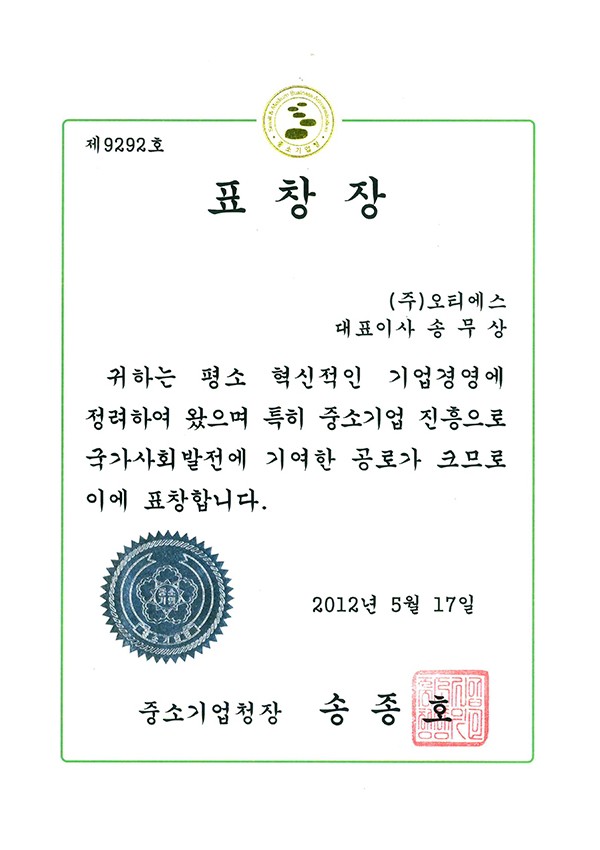 Certificate of Excellent Product Designation (Auto-Lift)