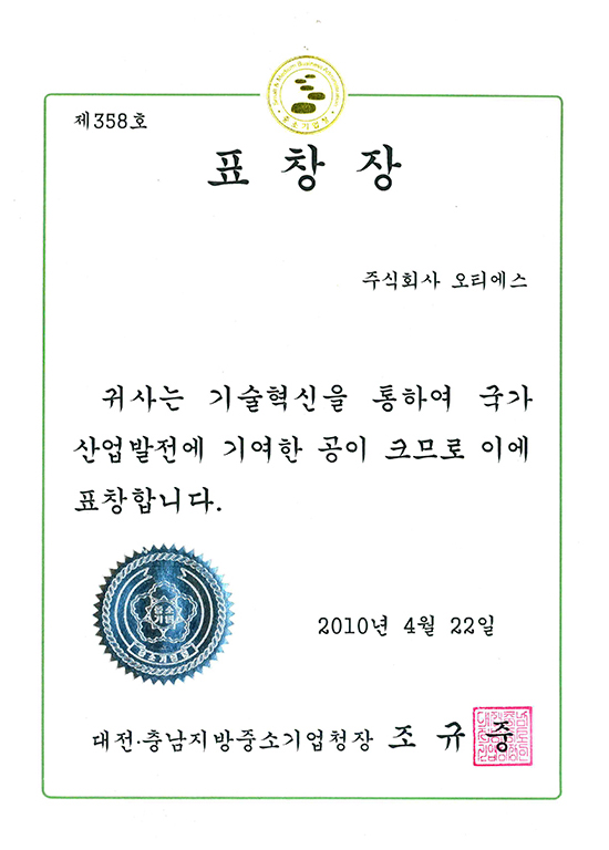 Awards Director General of the Daejeon & Chungnam Regional Office of MSS Award