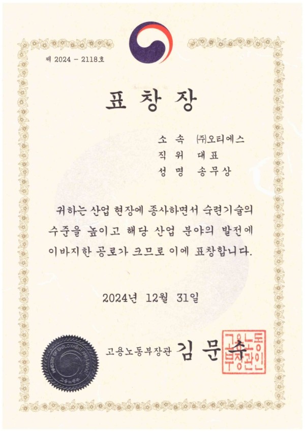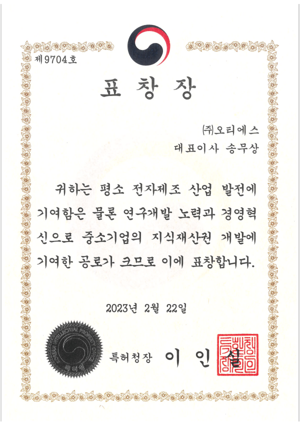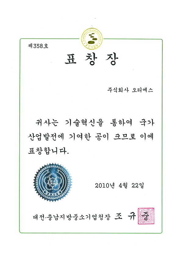 大田・忠南地方中小ベンチャー企業庁長 表彰状 受領