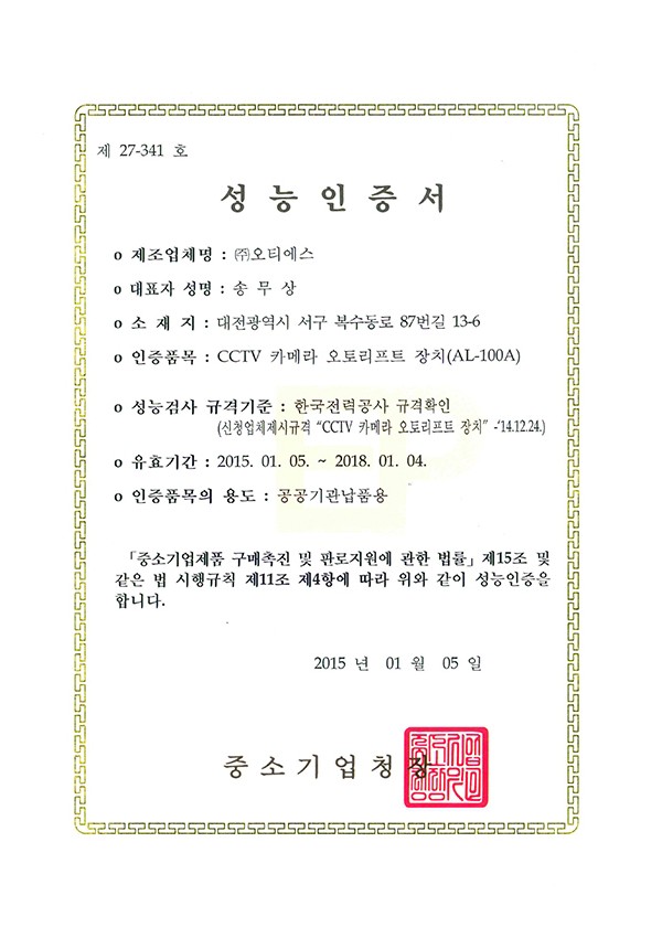 FCC認証 取得 (CCTVカメラ オートリフトシステム)