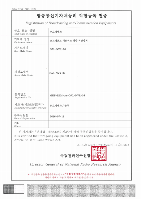 인증 NVR-KC인증서(NVR-16) 페이지 정보 작성자 OTS 조회조회 157회 작성일작성일 25-12-23 18:36 본문 NVR-KC인증서(NVR-16) 목록 이전글NVR-KC인증서(NVR-500-S) 다음글NVR-KC인증서(FNR-64)