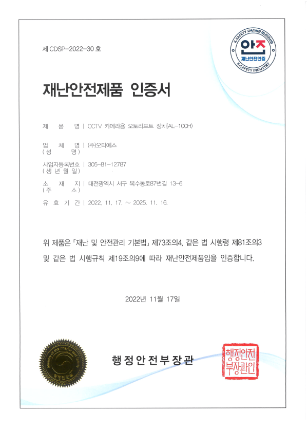 認証 2022年 災難安全認証 獲得 (オートリフト) ページ情報 投稿者 OTS 閲覧数 閲覧 112 投稿日 投稿日 2025.12.23 18:42 本文 2022年 災難安全認証 獲得 (オートリフト) 検索 一覧へ 前の記事地域特化プロジェクト「レジェンド50+」参加認証企業 認定証 受領 次の記事2021年 大田広域市 有望中小企業 指定 (認定証 受領)