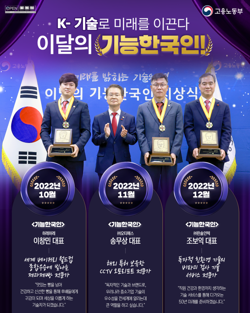 오티에스 송무상 대표 기능 한국인상 수상 - 2022년 11월